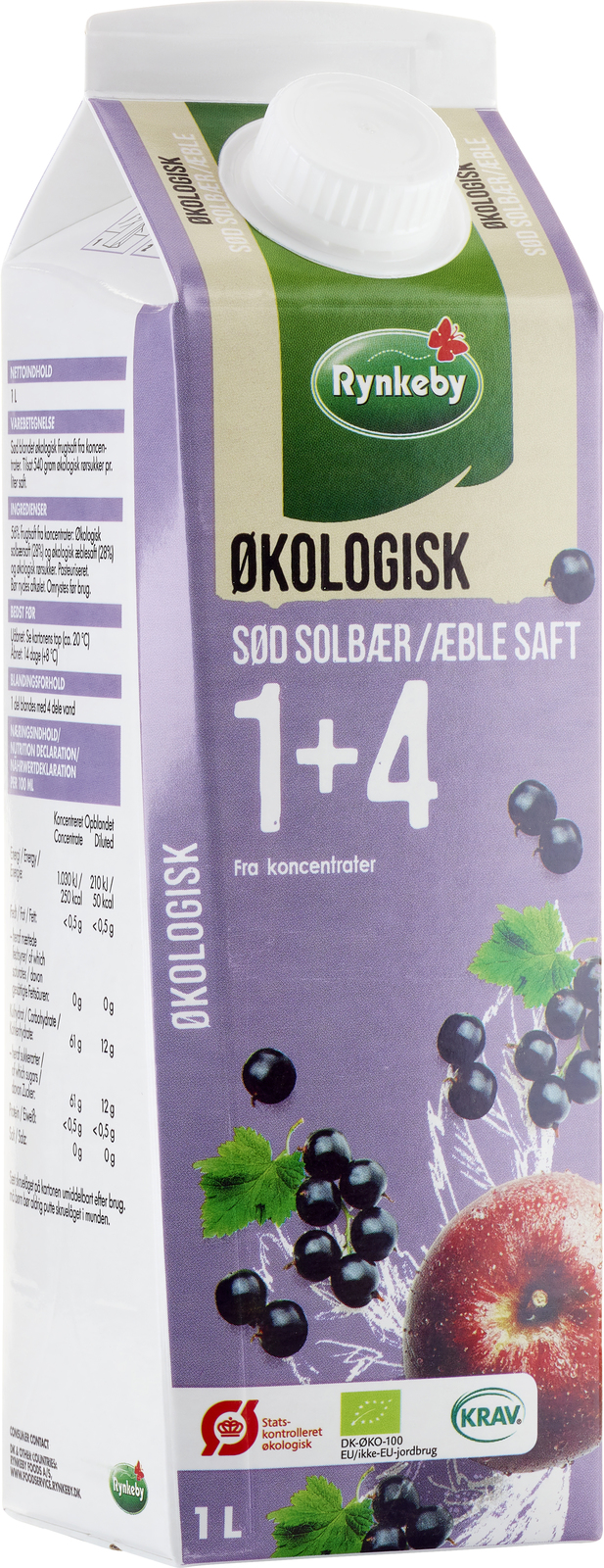 Produktnavn:Økologisk sød solbær/æblesaft 1 4